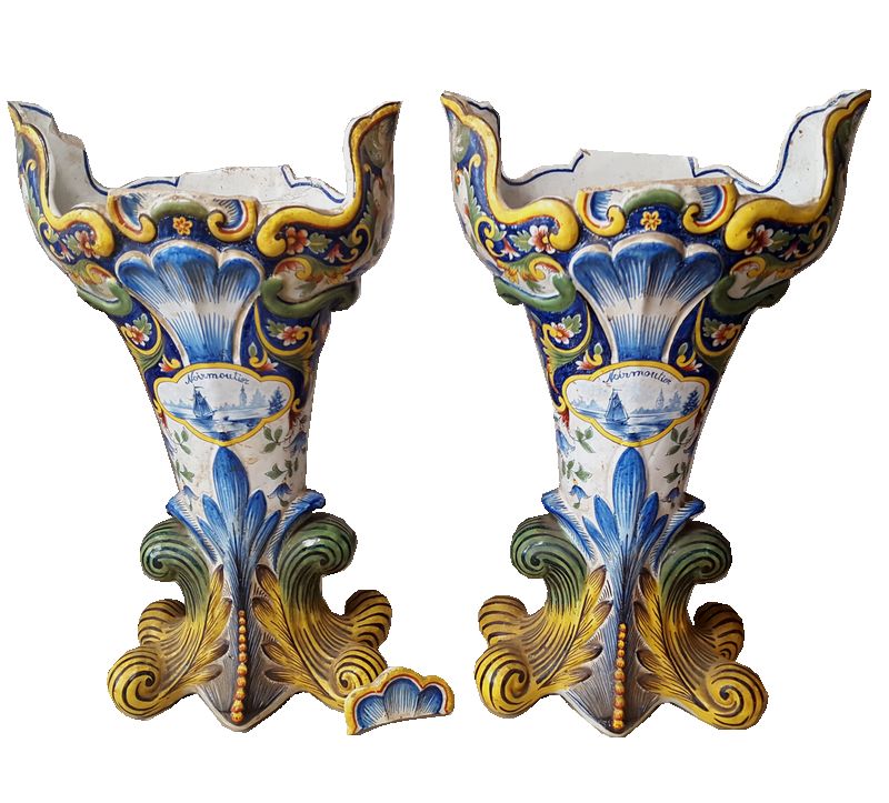 Si besoin les morceaux manquants sont reconstitués soit par des moulages ou par la sculpture sans jamais réinventer la forme manquante.L’idéal est de faire un moulage sur une pièce originelle de la même manufacture ou bien de se référencer dans des ouvrages spécialisés.